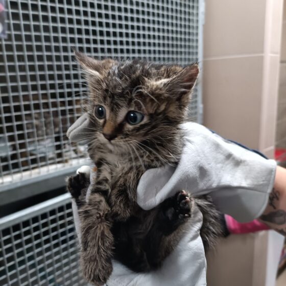 Dne 10.10.2025 nalezeno kotě/kočička v ul. Skladní v Plzni. Kotě ve věku 2 měsíců s váhou 470g. Koťátko je nemocné, plné blech a škrkavek. Nasazeny ATB, odčerveno.