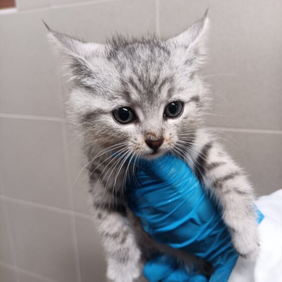 Dne 13.10.2025 kočka nalezena v ul. Prvomájová 6, Plzeň Nemocné kotě ve věku 2 měsíce s váhou 950g. Nasazeny ATB.