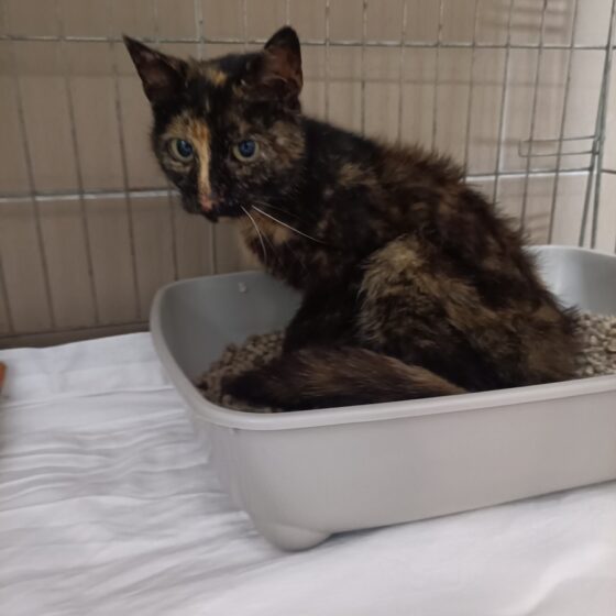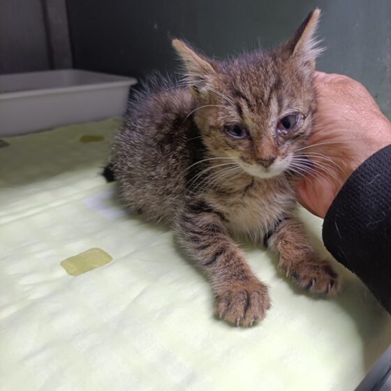 Dne 10.10.2025 nalezeno kotě/kočička v ul. Skladní v Plzni. Kotě ve věku 2 měsíců s váhou 470g. Koťátko je nemocné, plné blech a škrkavek. Nasazeny ATB, odčerveno.