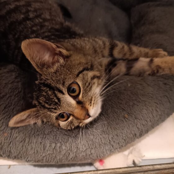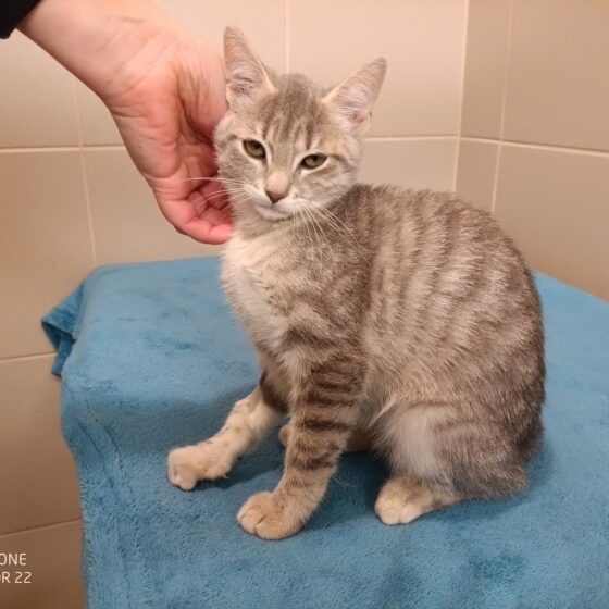 Dne 23.11.2025 nalezeno kotě v ul. Adélova v Plzni. Věk cca 3 měsíce, váha 640g, horší kondice, první den hypotermická, ale po zahřátí se zlepšila. V léčení.. V útulku si užívá svůj ...