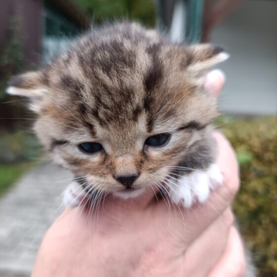 Dne 26.8.2025 nalezeno kotě/kocourek společně s dalšími sourozenci v ulici Mezi Ploty v Plzni. Věk cca 6 týdnů, váha 290g. Kapou se oči, první odčervení. Kecka je prcek, který potřebuje péči a ...