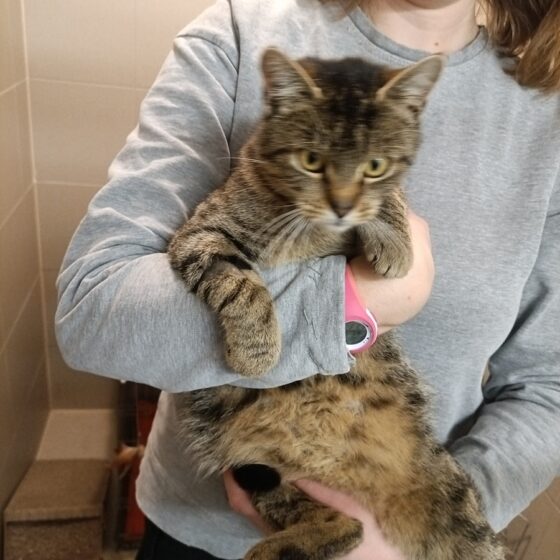 Dne 19.01.2026 nalezena kočka v ul. Červenohrádecká, Plzeň. Váha 3,40 kg, věk cca 8-10 let, testovaná FIV/FeLv s negativním výsledkem. Zpočátku byla divoká (žila venku), ale po dvou dnech v útulku začala ...