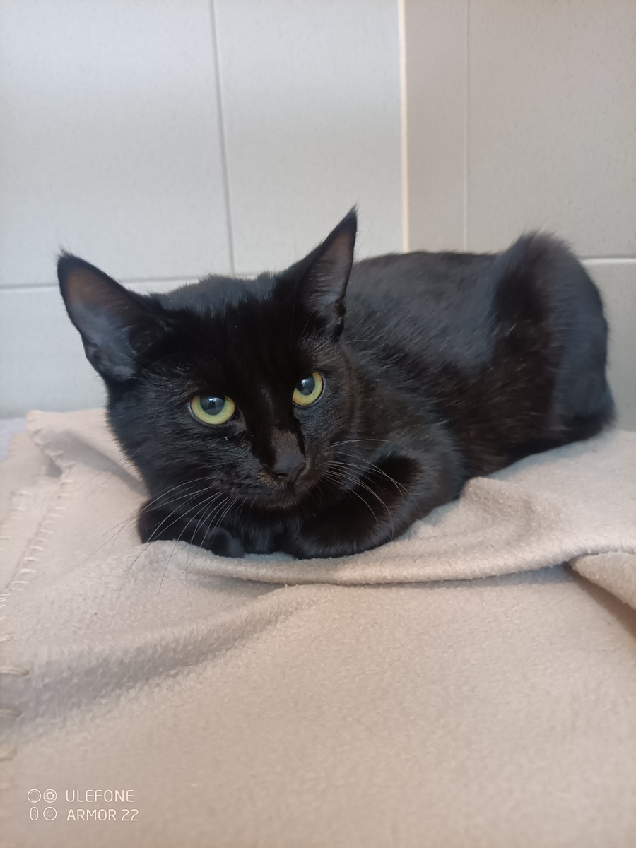 Věk cca 1-2 roky, váha 2,960kg. Trochu opatrná na cizí lidi, ale začíná poznávat lásku, vlídné slovo a pohlazení. Má velká a nádherná kukadla, které vás nadchnou. Do nového bude odcházet kastrovaná a čipovaná. Pravděpodobně byla zvyklá žít v bytě, kde bylo teplíčko.