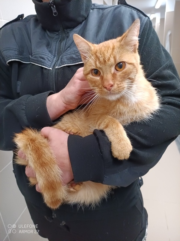 Věk cca 1 rok, váha 4 kg, testovaný FIV/FeLV, odčervený. Zatím má průjem a očkování se posouvá. Zlaťák je obrovský mazel, bude to kocour za odměnu, kterého jeho majitel vyhodil do Borského parku mezi místní kočky. Díky jeho přítulnosti a chování pejska si ho všimla paní, co tam chodí krmit starousedlíky. Do nového domova půjde kastrovaný, očkovaný, odčervený a čipovaný. To však ještě nějakou chvíli potrvá.