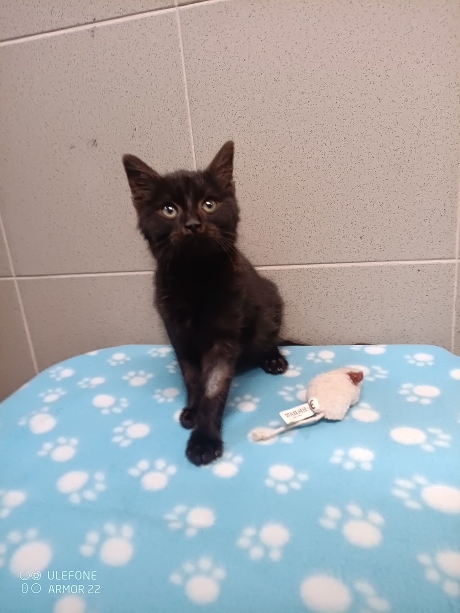 zpět 3691 Šmudlík Dne 03.11.2025 kocourek nalezen v ul. K Jezu, Plzeň. Věk cca 3 měsíce, váha 1,040kg, testovaný FIV/FeLV s negativním výsledkem, horší kondice, nemocný, nyní má antibiotika. zpět