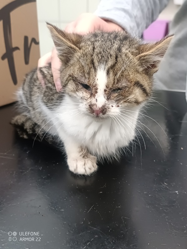 Dne 9.11.2025 nalezeno nemocné kotě v ul. K Hrádku v Plzni.