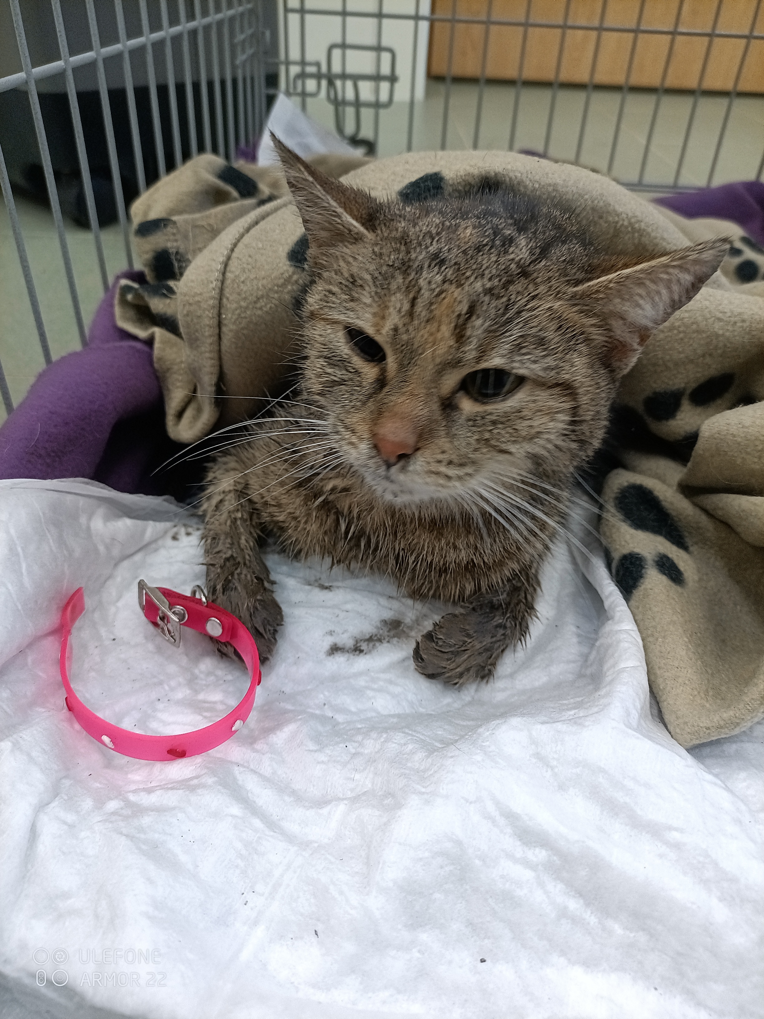 Dne 2.1.2025 nalezena zraněná kočka s růžovým obojkem v ulici U Trati v Plzni.