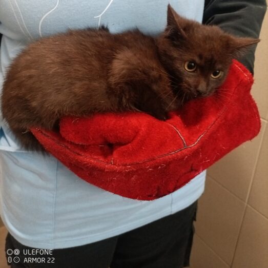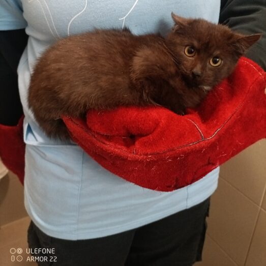 Věk cca 4-5 měsíců, váha 1,860 kg, očkovaný, testovaný FeLV/FIV a čeká na kastraci. Při vstupní prohlídce neošetřitelný až agresivní. Od narození žil venku. Zpočátku se chová opatrně a nedůvěřivě, ouška má často připlácnuté dozadu a je připravený v případě nebezpečí utéct. Gargamel začíná zjišťovat, že lidský dotek není hrozba a teprve se učí, že svět může být i laskavý. V náruči je Gargamel malinkatý puclíček. Najedeme človíčka, který by se kocourkovi věnoval a pokračoval v mazlení?? Z divokého kotěte se stává věrný přítel.