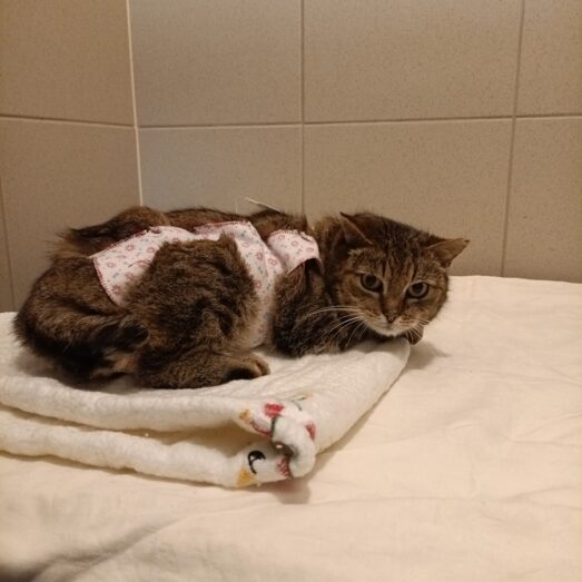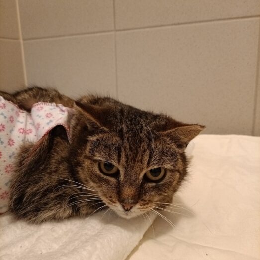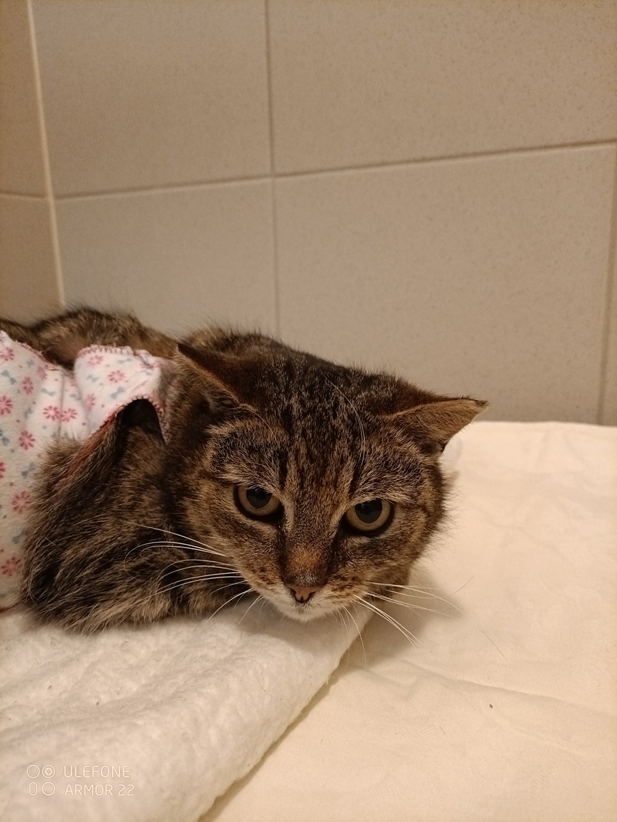 Váha 3,40 kg, věk cca 8-10 let, testovaná FIV/FeLv s negativním výsledkem. Zpočátku byla divoká (žila venku), ale po dvou dnech v útulku začala zjišťovat, že lidská ruka slouží k mazlení. Teplý pokojíček a pelíšek si zamilovala. Budeme hledat nový a klidný domov. Nejraději se schovává pod peřinou, ale má ráda hlazení. Do nového bude odcházet kastrovaná, očkovaná, odčervená a čipovaná. Nyní má antibiotika (nachlazení, rýma, kašel). Ringa bude milá, hodná a vděčná kočičí dáma.