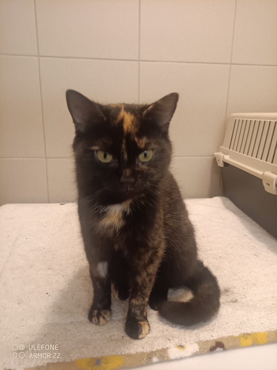 Věk cca 1-2 roky, váha 2,80 kg, testovaná na FIV/FeLV s negativním výsledkem. Začala trochu pšíkat, nyní má léky a podporu na imunitu.
