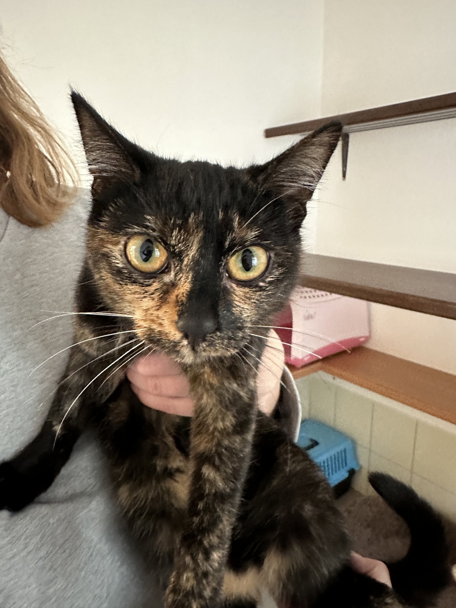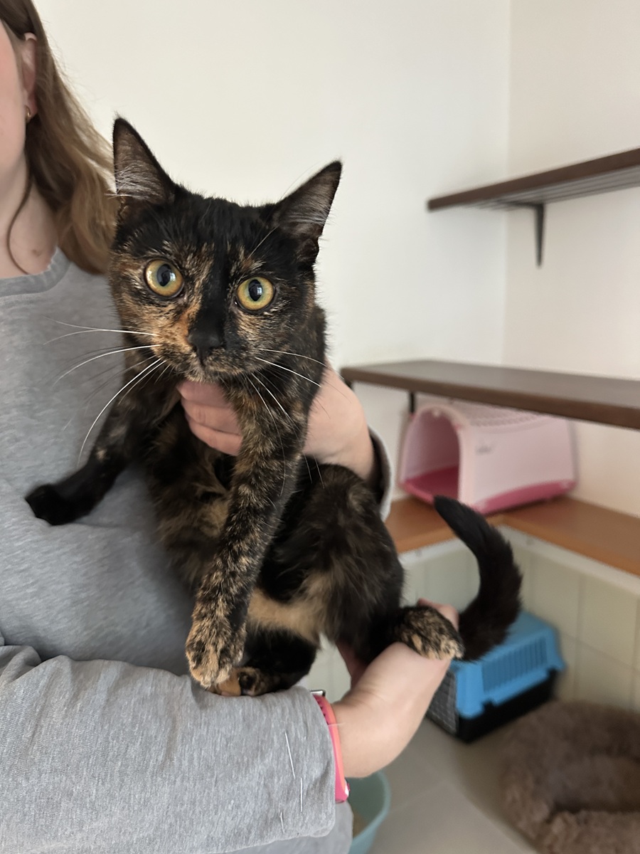Dne 23.02.2026 přijatá kočka z důvodu hospitalizace majitele. Majitel bude hospitalizovaný dlouhodobě a tak se rozhodl, že kočičku daruje. Zájemci mohou volat do útulku. Do nového půjde na Darovací smlouvu mezi původním a novým majitelem.