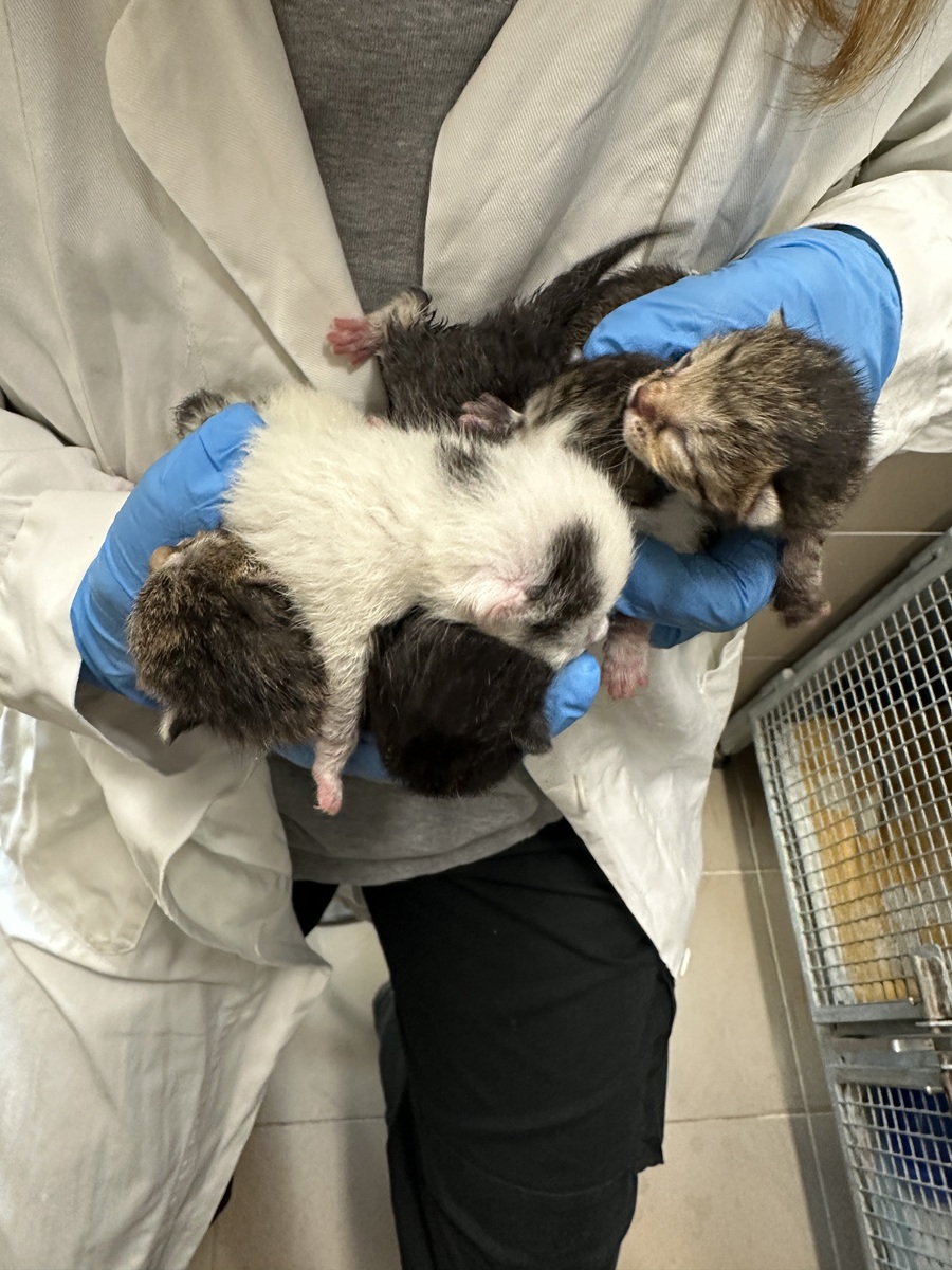 zpět 3859-3863 Dne 17.04.2026 nalezeno 5 koťat v obci Třemošná. Věk cca 3-5 dnů, krmíme stříkačkou a doufáme, že to prckové zvládnou. Průměrná váha koťat je 115 g. Prosíme zájemce, nevolejte – zatím nelze zamluvit ani rezervovat!!! Jsou to kojenci!!! zpět